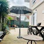 Musee Aquarium d'Arcachonからわずか350メートルに位置するベッドルーム1室のVilla8Pers 3'Piedplage Pleincentre Piscine Parking Wifi アルカション ヴィラには、庭園の景色を望むテラスがあります。 プールを提供するこの別荘は、ラ・コクシネルから7kmの距離の場所にあります。